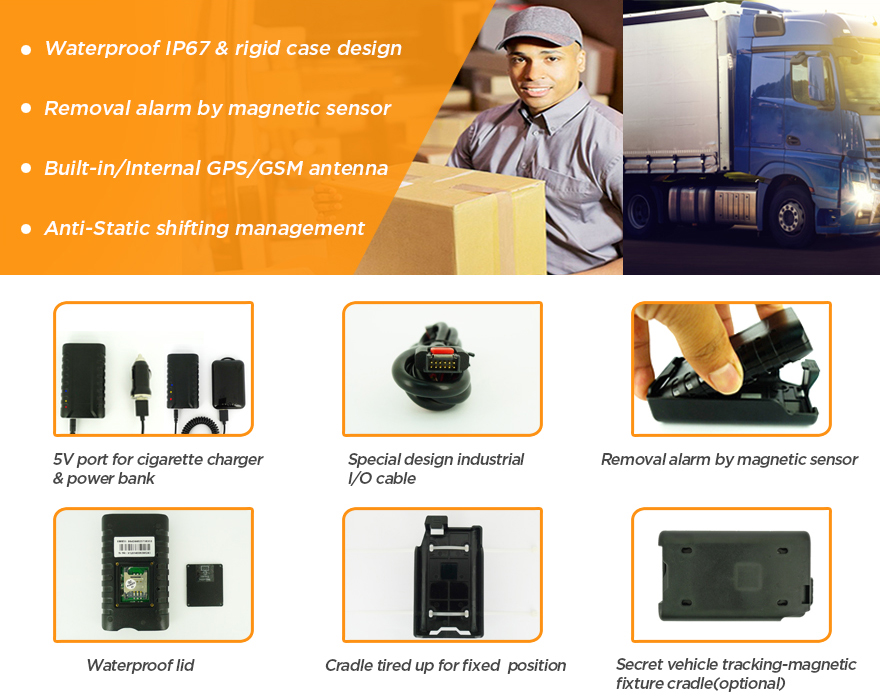 Tracker har indbyggede terminaler af GPS (Global Positioning System) modul og GSM kommunikationsmodul, som bruges til at få placeringsdataene og sende det til autoriseret telefonnummer via SMS og tracking via gratis kort Google Earth eller Google Map